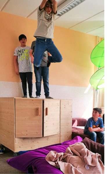 Gelernt haben Jana und ihr Team, dass anfangs klare Ansagen nötig sind. Mitbestimmung überfordert junge Menschen, die sich erst mal orientieren müssen. Dabei können Erzieherinnen ihnen zwar helfen, sie fragen, wie es ihnen geht und was sie brauchen, aber ihre Erfahrungen müssen die Kinder selbst machen. Reagiert ein Kind über, muss es sich – am besten begleitet von einem Erwachsenen – in einen engeren Rahmen zurückziehen, um zur Ruhe kommen zu können. Nehmen Diskussionen kein Ende, müssen die Erzieherinnen ein Stoppzeichen setzen, bevor sie mit den Kindern üben, wie man seine Meinung vertreten kann, ohne – über die Stränge – zu schlagen.