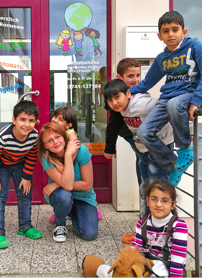 Im September 2015 wurden an der Plauener Grundschule Kuntzehöhe zwei Klassen mit Deutsch als Zweitsprache eingerichtet, und quasi über Nacht kamen zehn Kinder aus Syrien, Pakistan und dem Iran in den Hort, die kein Wort Deutsch kannten. Ihre Familien waren in Plauener Erstaufnahme-Einrichtungen gelandet, bevor sie freie Wohnungen in der ganzen Stadt beziehen konnten. Schon mal ein Glücksfall.