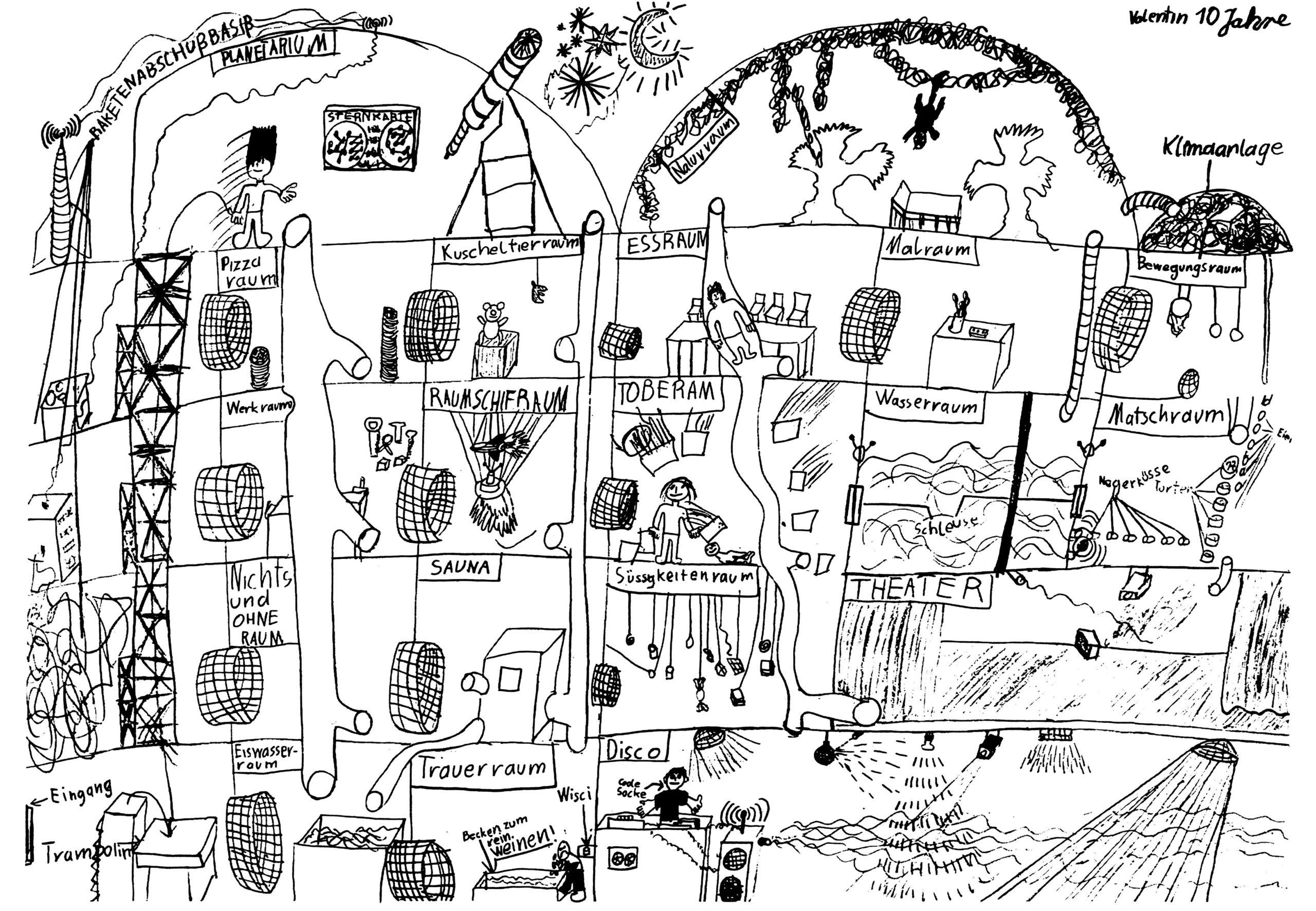 Machen wir nicht gleich den Staat haftbar, klagen wir ihn nicht an, dass er sollte und müsste und überhaupt. Da wird nichts draus. Bilden wir Bündnisse zur Finanzierung einiger Kathedralen. Bilden wir Bündnisse für Bildung. Und dazu gehört erst mal das building, der jeweils besondere Ort. Ein zugleich öffentlicher und doch geschützter Ort. Verschwenderisch und schön! Mit Werkstätten, Übungsräumen, Ateliers, Laboren, Räumen der Stille und zum Toben, mit Unterrichtsräumen und Lernbüros. Ein ganz und gar diesseitiger Tempel für erwachsen gewordene Erwachsene und für Kinder voller Neulust!