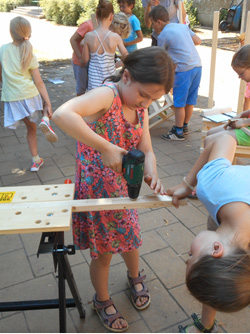 Es folgt der kreative Prozess des Entwickelns, Entwerfens und Bauens. In Kleingruppen diskutieren die Kinder Lösungsentwürfe. Die kleinen baumeister sorgen für den Austausch zwischen Kita und Grundschule bis eine Umsetzungsidee feststeht. Dann geht es ans Organisieren und Bauen. Teilweise müssen auch bürokratische Hürden in Angriff genommen werden, wie zum Beispiel die Beantragung eines Zebrastreifens. Den Abschluss bildet ein gemeinsames Präsentations- und Abschlussfest, zu dem eine breite Öffentlichkeit, Eltern, Expert*innen und Freund*innen eingeladen werden. Die Idee einer temporären oder auch nachhaltigen Umgestaltung der Stadt im öffentlichen Raum wird aufgebaut, präsentiert und erprobt.
