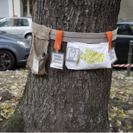 Nach Recherchen, dass viele Haufen an Blumen liegen, beschließen die Kinder, „Hundebaumgürtel-Service-Stationen“ zu bauen. Um die Baumstämme gewickelt, versorgen diese die Hundebesitzer mit Säuberungsmaterial. Die Kitakinder wählen Bäume aus, messen deren Umfang, organisieren Tüten. Die Schulkinder schneiden, hämmern und nähen die Gürtel. Parallel werden Prototypen von Zigarettenschachteln entwickelt, in die Aschenbecher integriert sind und somit ein „In-die-Gegend-werfen“ verhindern sollen. Die betreffenden Ideen schicken wir an Firmen der Zigarettenindustrie.
