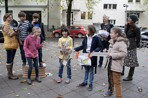 Der Wirkungsradius des Museums erweitert sich durch die Interventionen oder auch „Rebellionen“ mit den kleinen baumeistern vor Ort in den Kiezen der Kinder. Die Bedeutung des Themas Stadt wurde hier fassbar und erlebbar. Ergebnisoffen erforschten, hinterfragten und gestalteten die Kinder mit den kleinen baumeistern ihren km2 Stadtumfeld. Sie griffen ein und machten die Perspektive und Forderungen der Kinder im Stadtraum sichtbar. Dabei wurden die Ergebnisse, Aktionen und Handlungsaufforderungen der StadtRebellen im Stadtraum wiederum in das Museum gespiegelt und dort präsentiert.