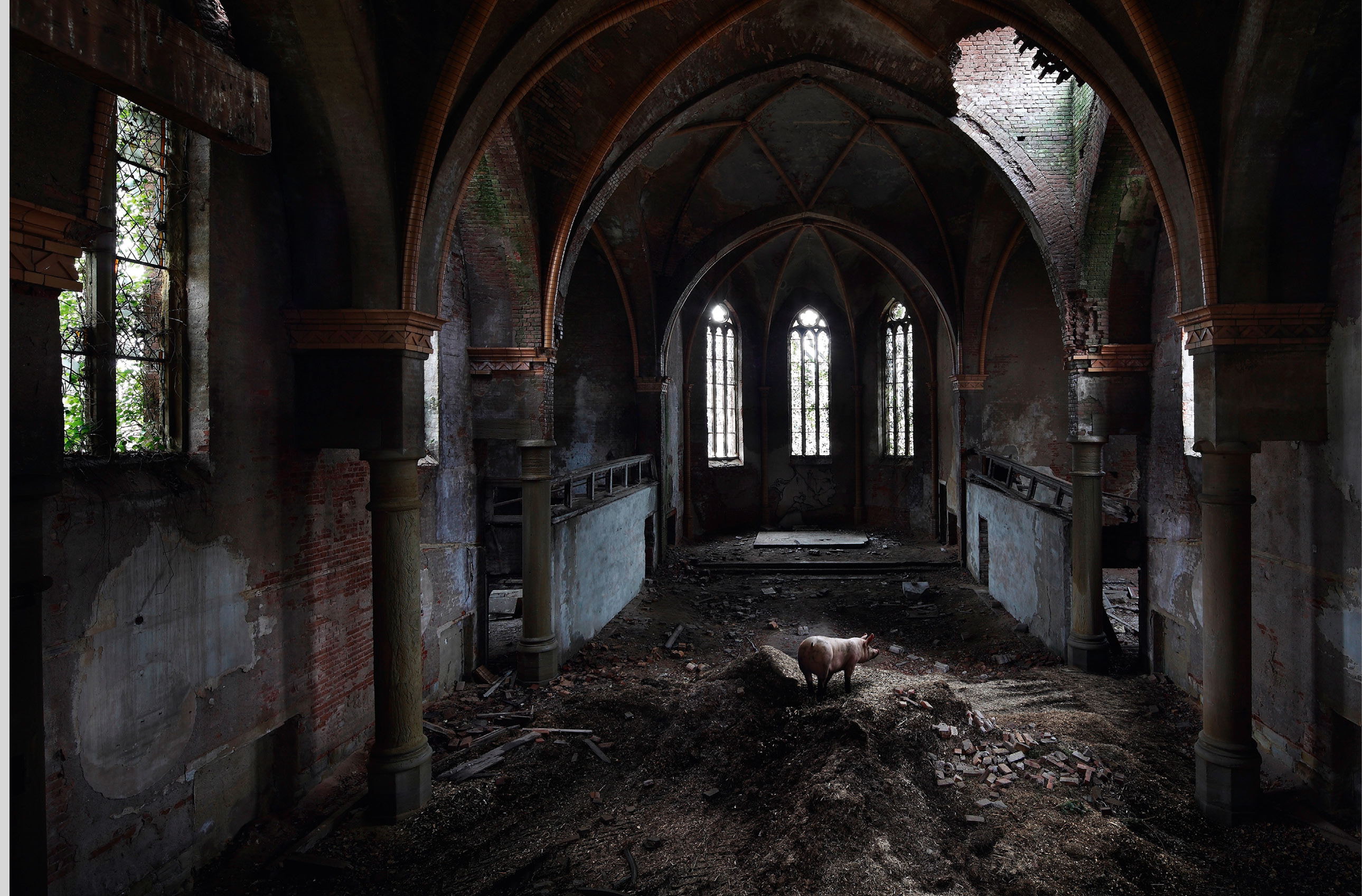 Er fotografiert seit vielen Jahren verlassene Orte wie Szenen aus einem postapokalyptischen Film. Palazzi, ehemalige Fabriken und leer stehende Krankenhäuser werden dabei zu einer faszinierenden Gegenwelt, in der sich Tiere und die Natur das zurücknehmen, was der Mensch besetzt hatte.