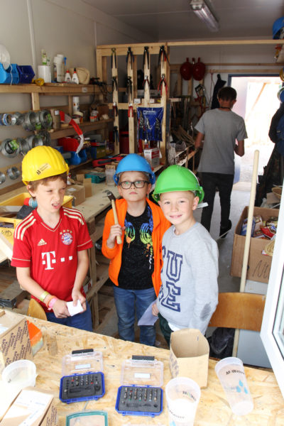 Die Kinder stoßen zu den Dingen, zu den Phänomenen selbst vor. Deshalb sind sie so begeistert. Sie verwandeln die Dinge. Das nennen sie Arbeit. Und Lernen ist, dass sie sich die Dinge und die Erfahrungen und das Wissen anverwandeln. Dabei werden sie nach ein paar Tagen einen Kopf größer. Diesen Satz habe ich mehrfach gehört. Auch von einer Redakteurin des Bayrischen Rundfunks. Sie macht hier mit den Kindern eine tägliche Radiosendung „radioMikro“ und sie hat ihren Sohn mitgebracht, der in die erste Klasse geht. In der Schule, sagt sie, begann er sich schon mehr und mehr zu langweilen und war frustriert, weil er sich nicht mehr wie im Kindergarten frei bewegen und seine Sachen machen konnte. Hier ist er glücklich, emsig, hier ist ihm nicht langweilig und nach ein paar Tagen ist er „einen Kopf größer.“