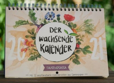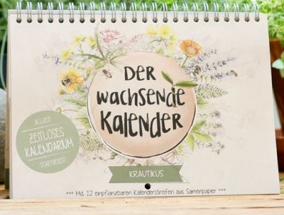 Jeder Kalender hat zwölf einpflanzbare Samenstreifen und bio-zertifiziertes, samenfestes Saatgut, ist auf Recycling-Papier mit Ökofarben regional und plastikfrei gedruckt.