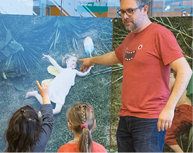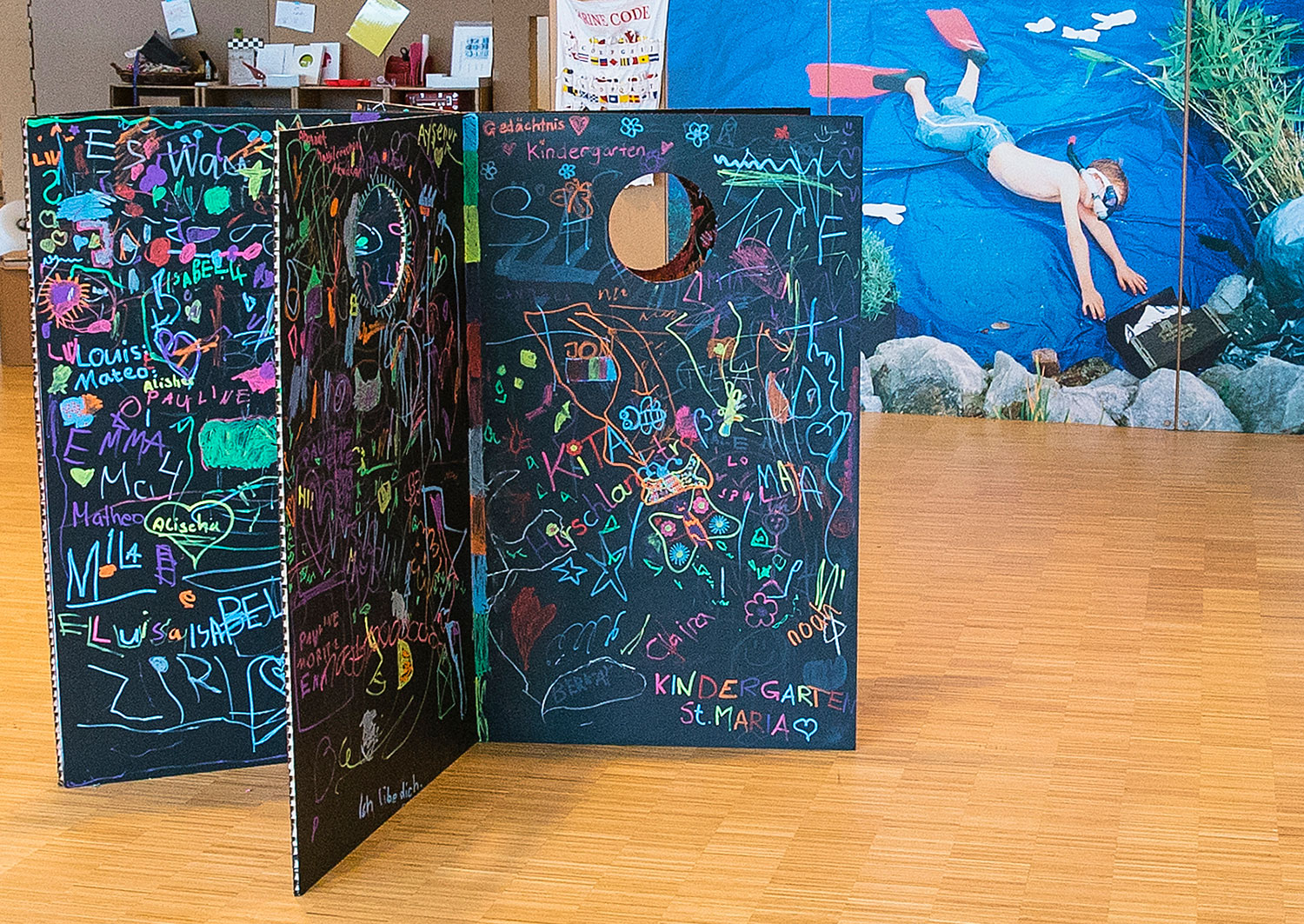 Fangt gemeinsam an, das erste Bild zu malen und überlegt, wie eure Geschichte weitergehen könnte. Wenn die Geschichte spannend ist, könnt ihr sie den anderen Kindern am Ende vorlesen – aus dem größten Buch im ganzen Museum.