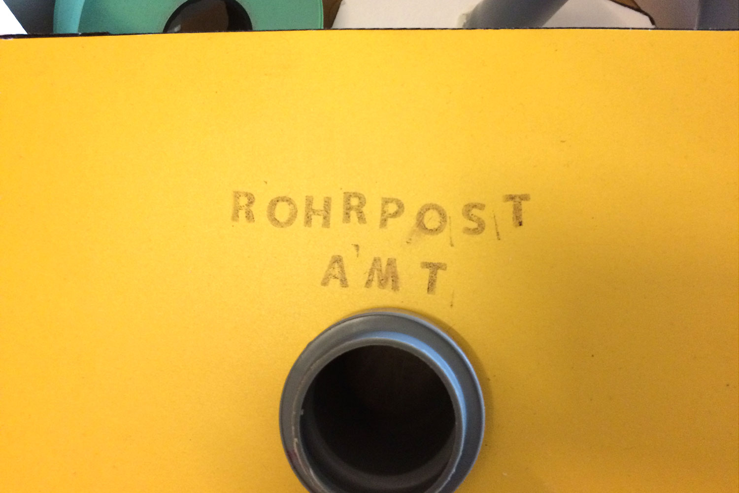 Brief malen, stempeln oder schreiben. In die Rohrpoströhre einlegen, Deckel drauf. Im Rohrpostamt in die Röhre einschieben und kräftig pusten. Zack!