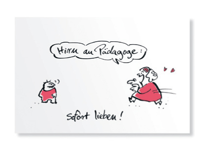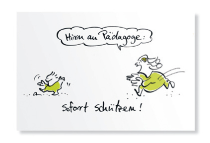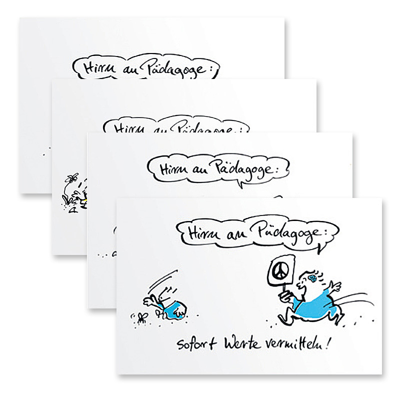 Natascha Welz (Tasche) zeichnete die Cartoons exklusiv für das begehbare Pädagogenhirn von wamiki. Auf vielfachen Wunsch gibt es  die Cartoons nun  auch als Postkartenset und als DIN A1-Poster.